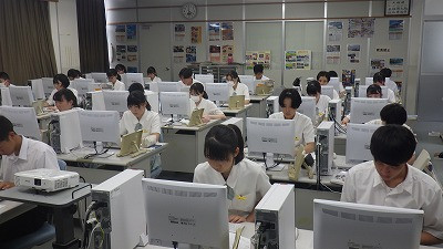 商業科では、6月中に全商主催の珠算・電卓、簿記、ビジネス文書(ワープロ)に関する検定試験が行われます。現在は、今週末のビジネス文書実務検定1級合格に向けて練習に励んでいます。なお、期末考査もありますが… この検定で、ビジネス文書に関する知識や作成技術、速く正確に入力する技能を身に付け、情報化社会に対応できる人材を目指します。とくに1年生は、入学して3カ月にもかかわらず、1級部門合格が2種目になるので、合格すれば素晴らしいです!