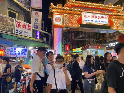 学校交流の後の夕食は、饒河街夜市へ繰り出しました🏮